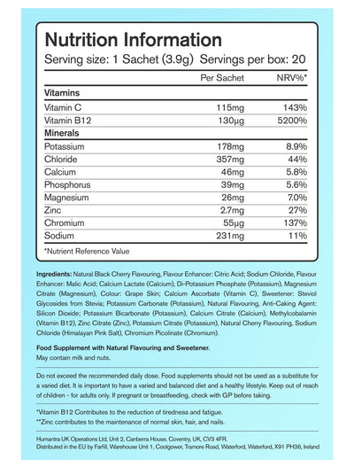 Powered by electrolytes and vitamin B12 for clean, steady fuel. No spikes, no slumps.