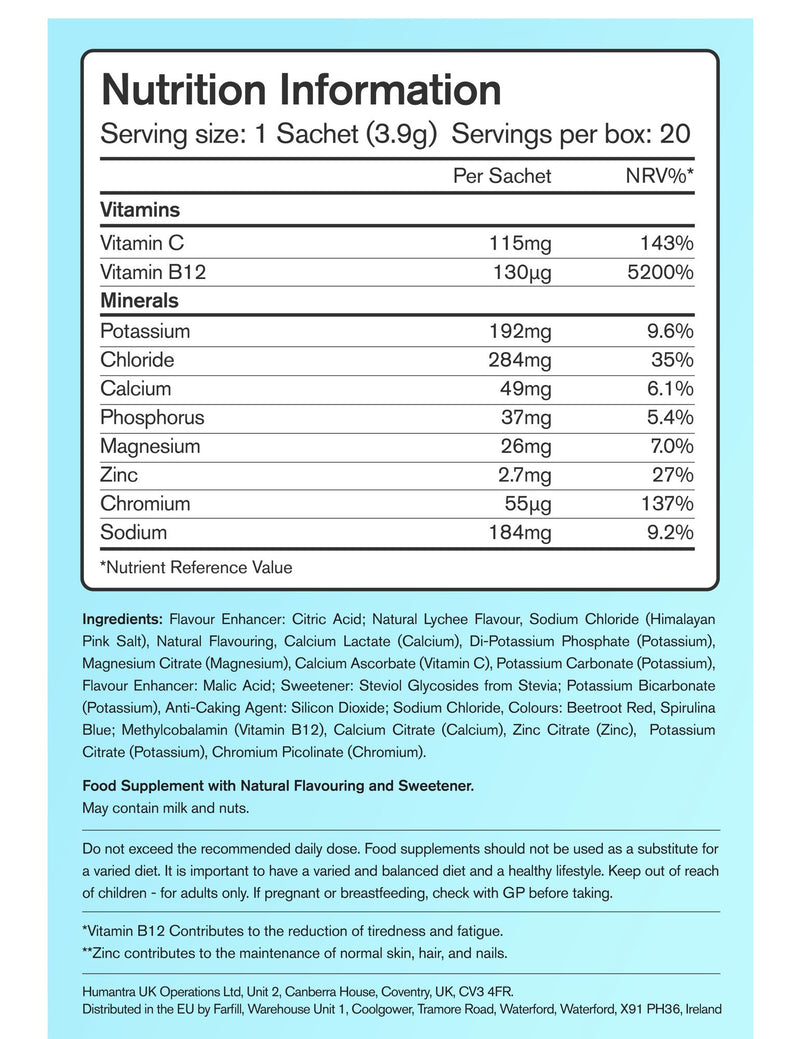 Powered by electrolytes and vitamin B12 for clean, steady fuel. No spikes, no slumps.