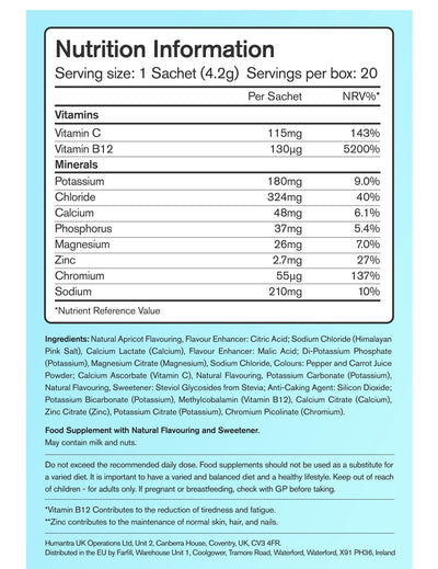 Powered by electrolytes and vitamin B12 for clean, steady fuel. No spikes, no slumps.